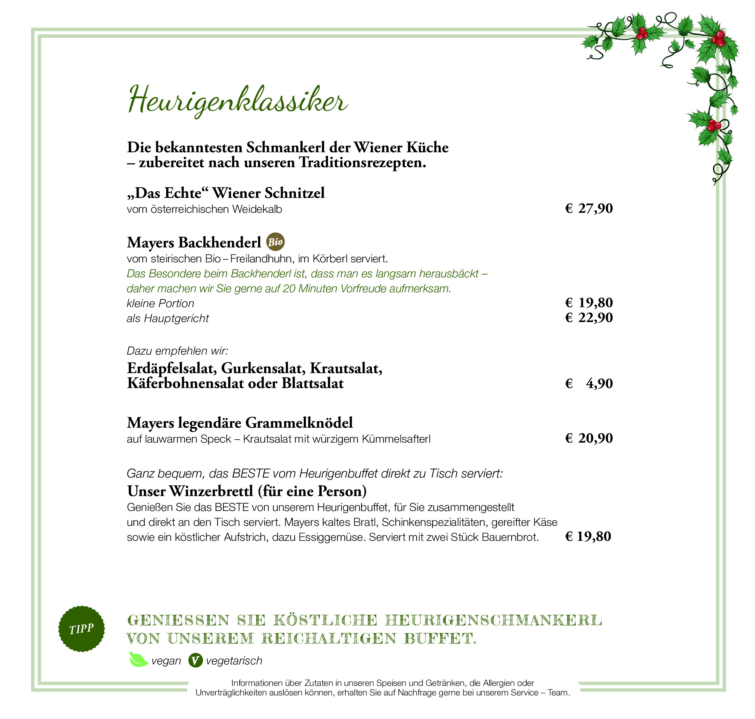 Noch heute erinnert seine Wohnung an ihn, die man vom Gastgarten aus über eine kleine Treppe in den ersten Stock erreicht. Die Wiener Heurigenkultur bringt Lebensfreude und Genuss an einen Tisch. Ein reichhaltiges, warmes und kaltes Buffet, mit saisonalen hausgemachten Spezialitäten bietet typische Wiener Schmankerl und lädt zum entspannten Verweilen bei einem ausgezeichneten Glas Wein ein.