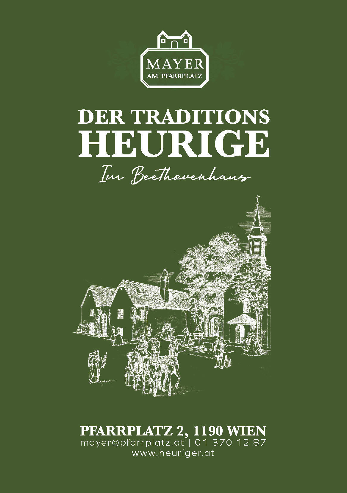 il nostro Mayer am Pfarrplatz nella Beethovenhaus offre ai vostri ospiti e dipendenti l’opportunità ideale di vivere un pezzo di storia viennese insieme alla cucina e al vino tradizionali viennesi. Una serata di successo inizia solitamente con un caloroso benvenuto, come il nostro punch con frutta di stagione o un bicchiere del nostro spumante. Con il vostro