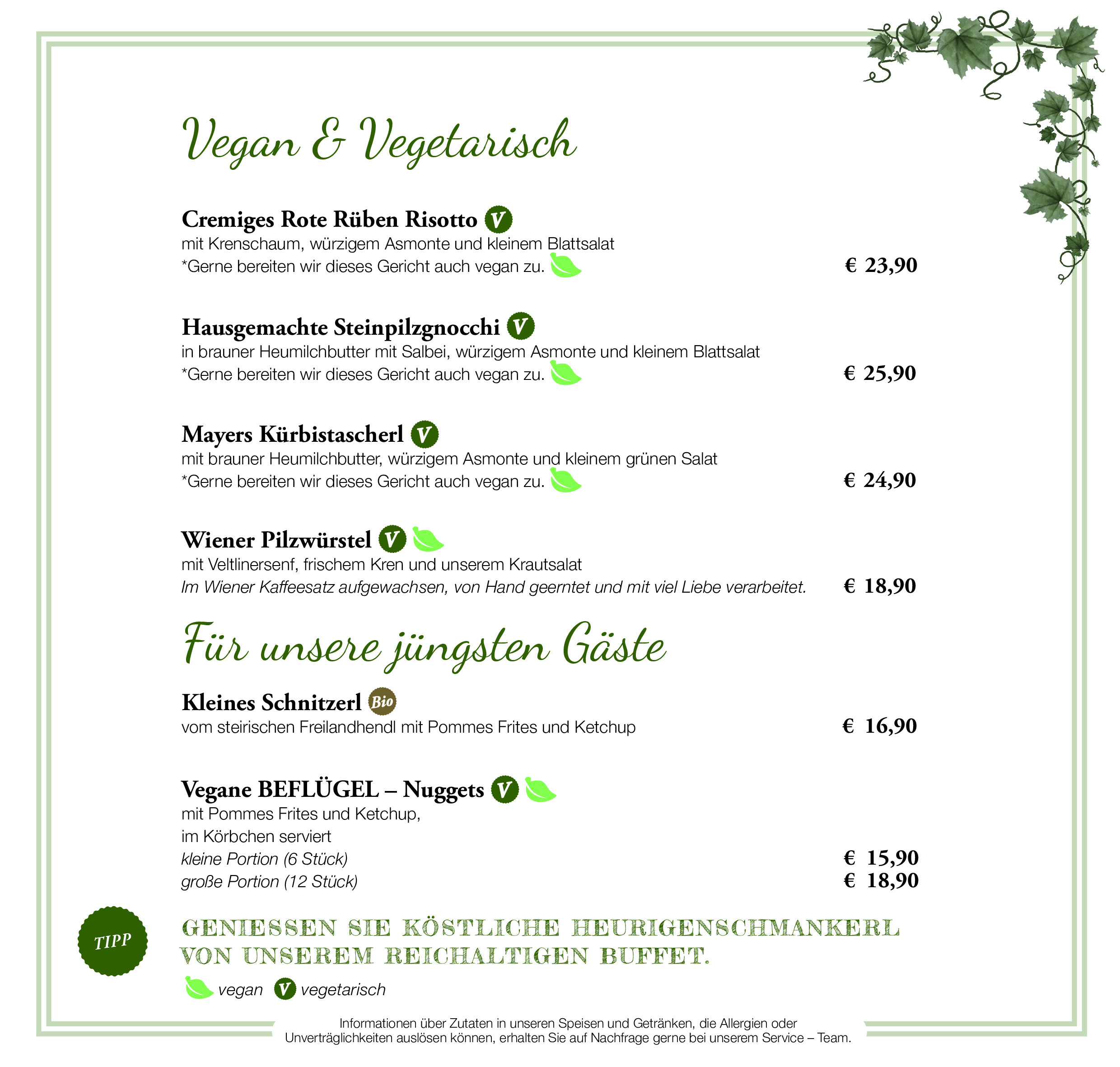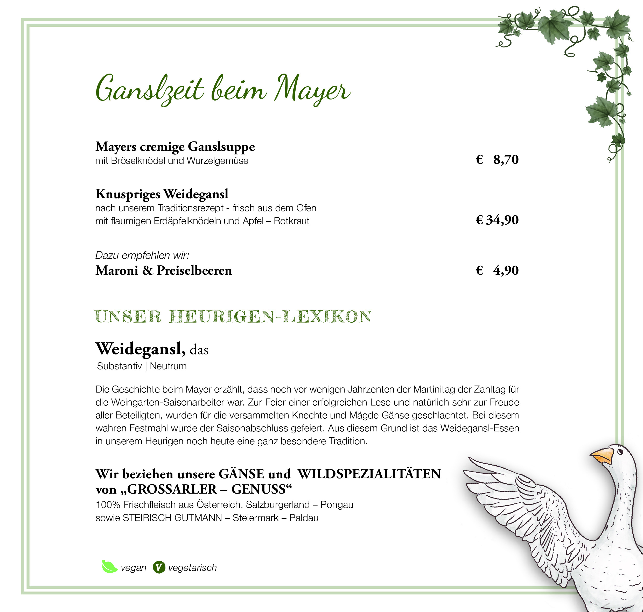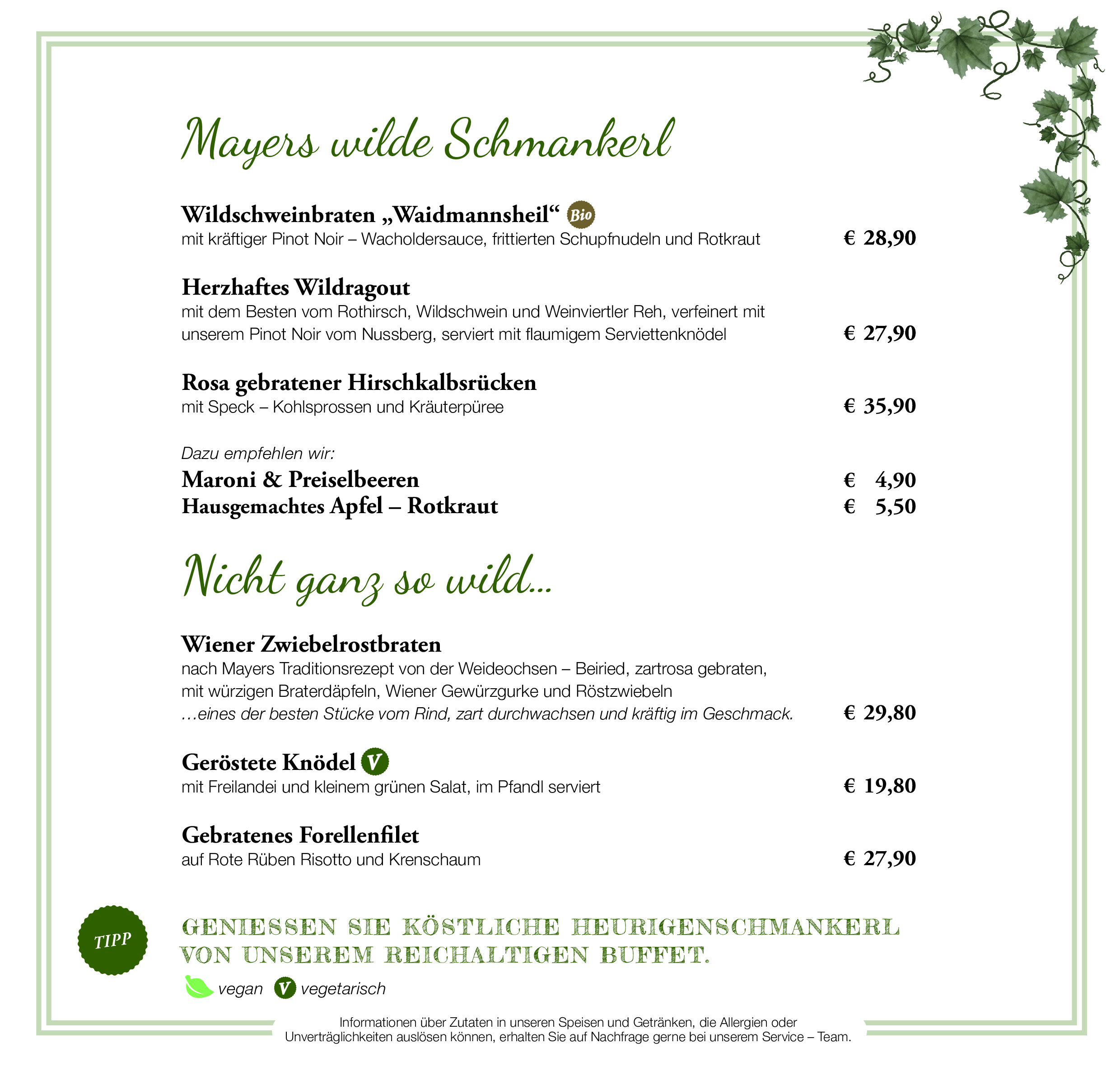 Der Herbst hält Einzug beim Mayer am Pfarrplatz – und mit ihm Köstliches rund um Wild und Gansl. Saisonal, regional und mit viel Liebe zubereitet. Genießen Sie die Vielfalt der Wildküche mit einem Glas Junger Wiener 2025 oder Pinot Noir Nussberg 2022 in unserer besonderen Atmosphäre. Kommen Sie vorbei und schmecken Sie den Herbst – wir freuen uns auf Ihren Besuch! 🍷